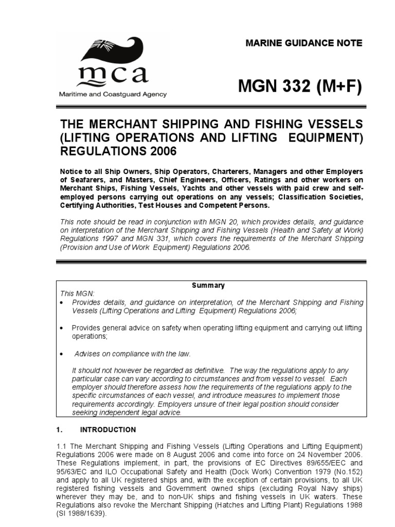 MGN 332 (M+F) The Merchant Shipping and Fishing Vessels (Lifting